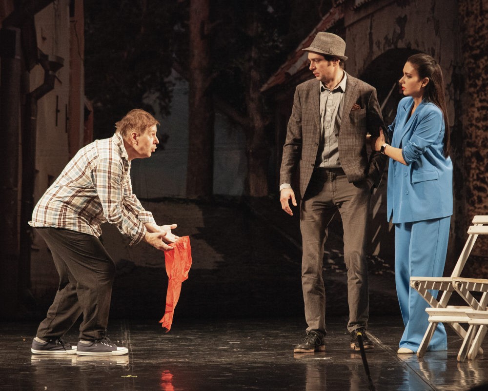 В спектакле используются авторская музыка и декорации. По пьесе Валентина Красногорова «Идеальный свидетель»